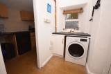 With plumbing for the washing machine, tiled floor.